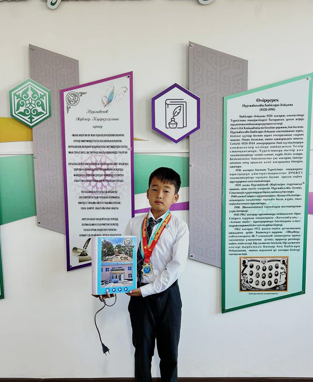 Үйірме жетекшісі, информатика пәнінің мұғалімі Әлия Төрегелдиева мен оның шәкірттері ерекше «Сөйлейтін кітап» жобасын әзірледі. Бұл құрылғы мектеп тарихы мен жетістіктерін қазақ тілінде таныстырады. Әр беті – білім мен еңбектің, дәстүр мен технологияның үйлесімін бейнелейді. Жобаның мақсаты – мектептің брендтік бейнесін қалыптастырып, қонақтарды жылы қарсы алу, білім ордасының рухын заманауи технология тілімен жеткізу.
